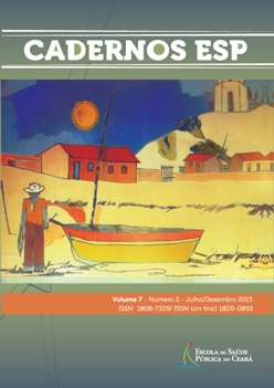v. 7 n. 1 (2013)O periódico Cadernos ESP se constitui como um instrumento de difusão técnica e científica de caráter inter e multidisciplinar no campo da Saúde Coletiva. Suas atividades buscam fortalecer a disseminação de conhecimento produzido por profissionais que atuam nos diversos espaços da área da saúde. [Ana Mattos Brito de Almeida]